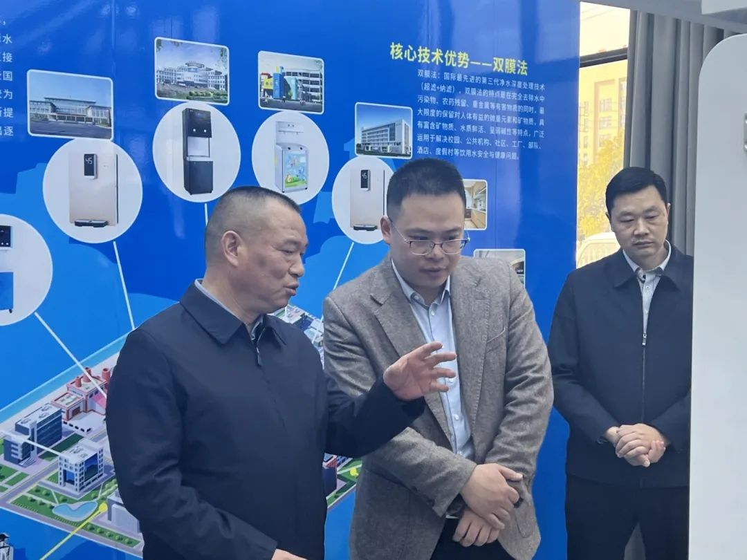 在公司董(dǒng)事長賈非的引領下,舒永忠先後參觀了(le)產品展(zhǎn)廳與(yǔ)生產車間(jiān),詳細了解了我司管道直飲水項目建設情況、設備工(gōng)藝流程、技術特點、企業經營及市場拓展情況。公司始終堅守服務社會發展,保障健康、安全供水的初心,穩紮穩打,持續(xù)推動高品質管道直飲水發展。