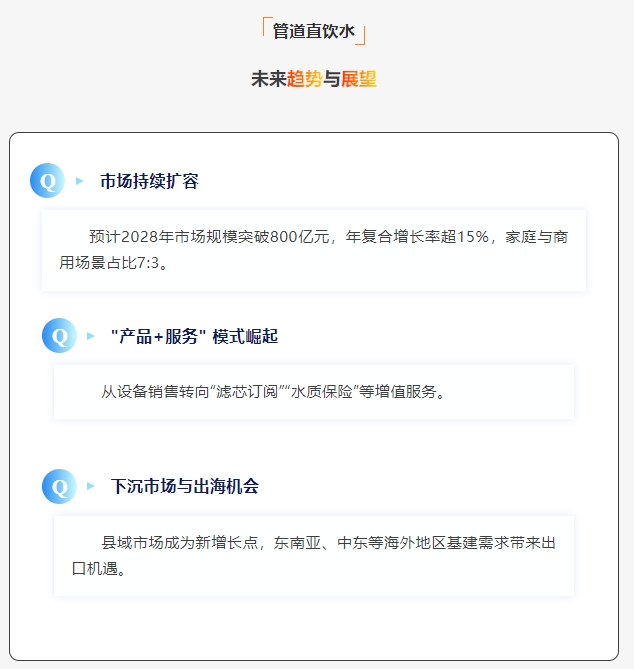 依托國(guó)家“水十條”水質攻堅行動、《“十四五”城鄉社區服務體係建設規劃》民生(shēng)提質要求(qiú),以及“健康(kāng)中國2030”目標規劃提升飲用水安全標準。DeepSeek倡議:以(yǐ)“直飲水入戶(hù)”點亮老(lǎo)舊小區(qū)煥新行動;以及新建住宅需逐步配置(zhì)直飲(yǐn)水係(xì)統,政策(cè)倒逼行業擴容!